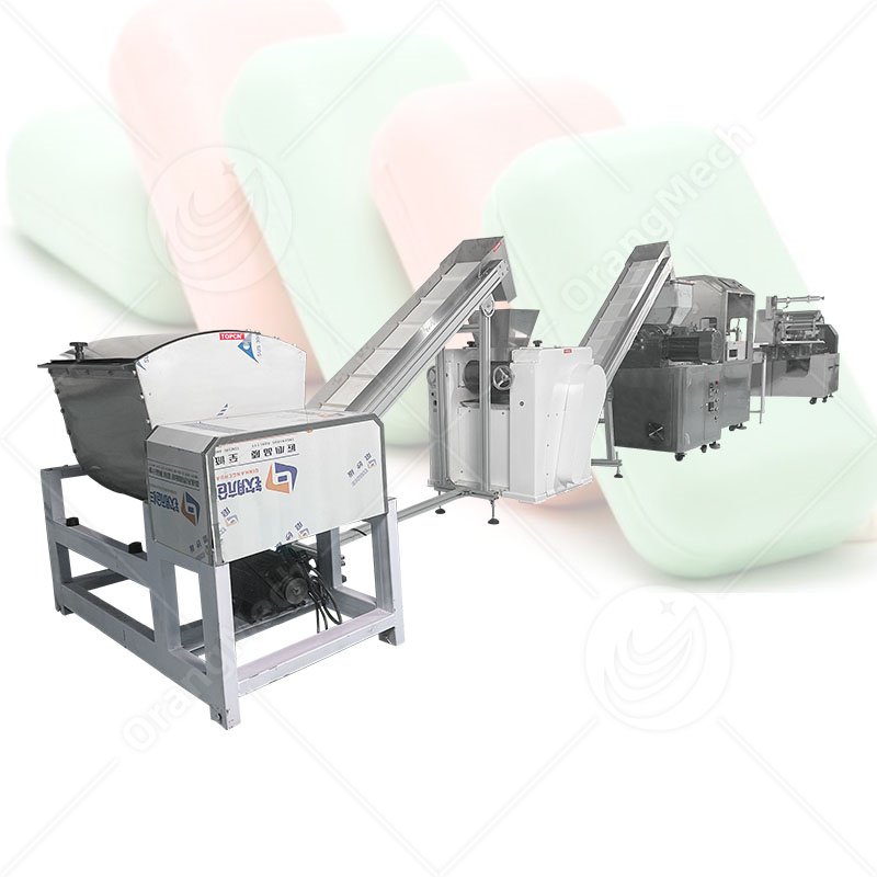 The laundry soap production line transforms raw materials, oils, and fats into usable soap through mixing. The resulting paste is then processed and molded into soap bars, which are then uniformly cut and packaged. The entire production cycle, from raw material mixing to finished product packaging, is completed through an automated process, ensuring consistent batch quality, large production volumes, reduced labor costs, and increased production efficiency.