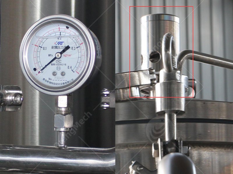 Built with a pressure gauge and dual safety relief valves, the system enables precise monitoring and control of fermentation conditions for consistent beer quality.