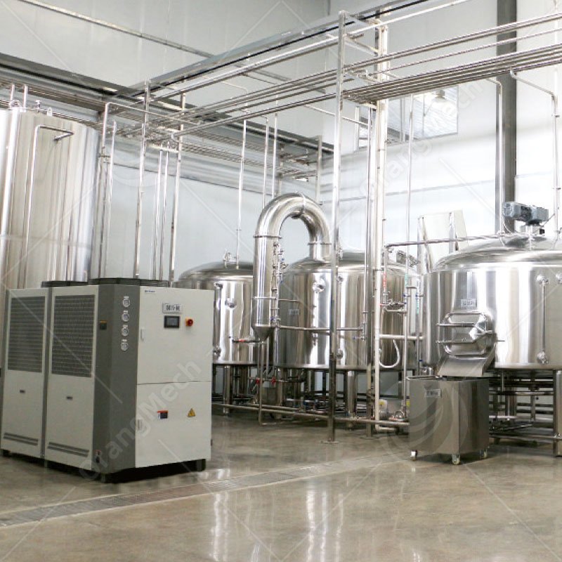 The working principle of a beer brewing production line is that malt is crushed, saccharified, filtered, boiled, whirled, precipitated, and cooled and then added with yeast for fermentation and molding.