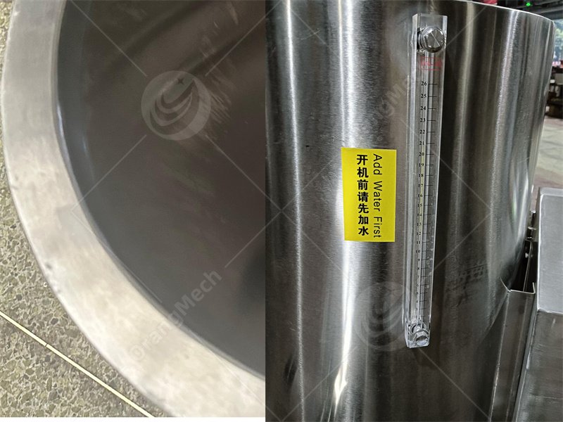 Double-layered cylinder structure with water temperature regulation in the middle layer. The outer side of the cylinder is equipped with a clear liquid level gauge to display the water level in the interlayer in real time, making it convenient for operators to replenish water.