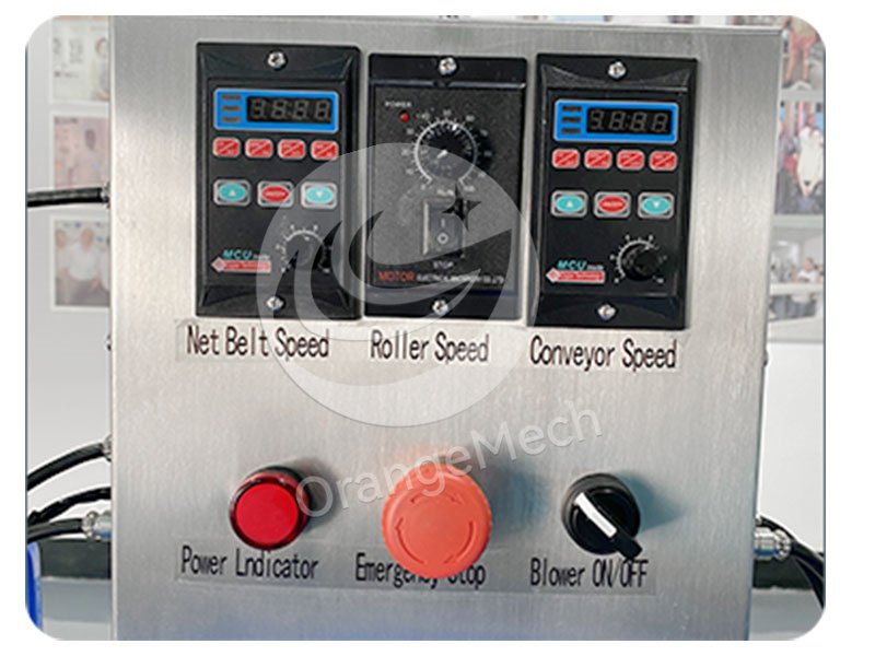 Conveyor belt is equipped with pressure wheel design to ensure smooth transition of products. The belt is elastic and adjustable to meet different production requirements. The control panel is designed with knob, which is intuitive and simple to operate and can be used without professionals.