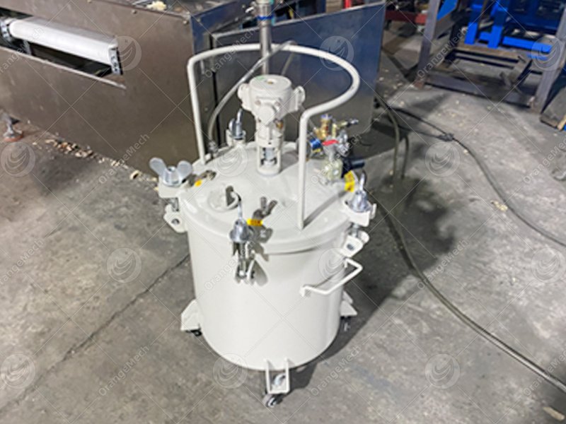 The sealed material tank comes with a pressure gauge and adjustable regulator, allowing precise control of internal pressure for consistent batter flow.