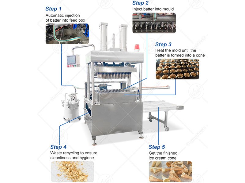 The mold shape can be fully customized to match your product needs, making this equipment a flexible solution in modern ice cream cone machinery.