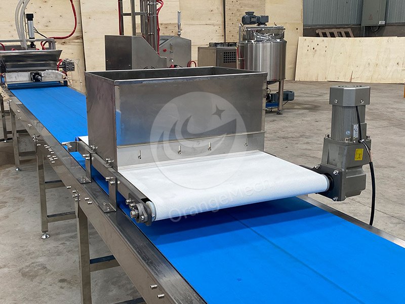 marshmallow production’s conveyor belt adopts servo motor, which is accurate, anti-sticking, durable and easy to clean.