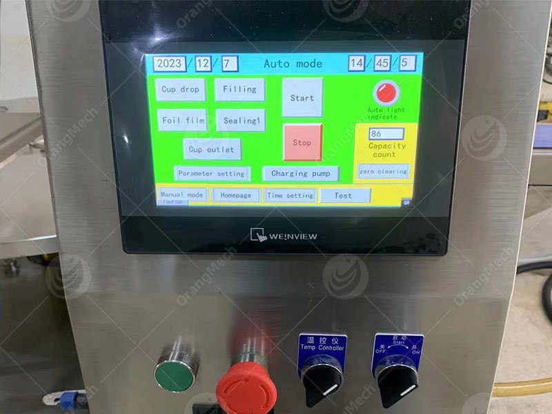 OrangeMech’s cup filling machine Supports custom languages. One-button start makes operation simple, fast, and efficient.