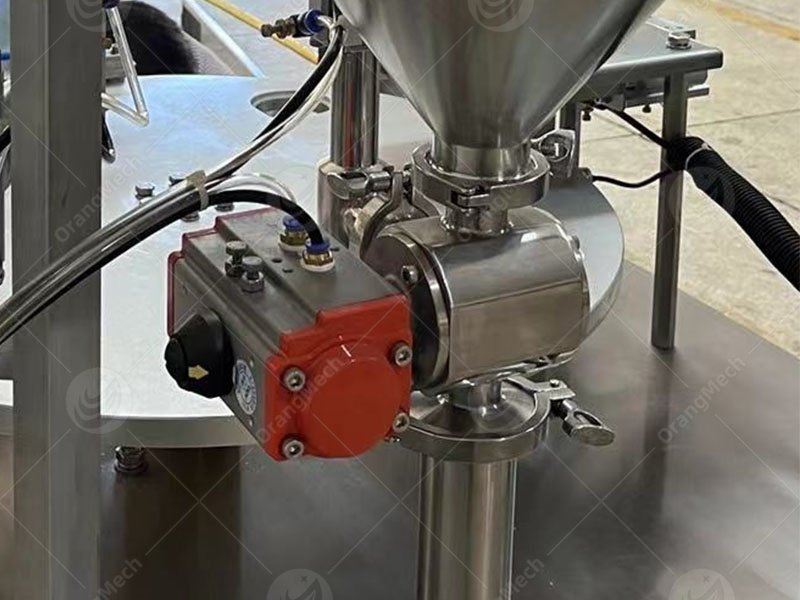 Rotary Type Cup Filling machine pneumatic drive makes the filling impact more stable and the filling more rapid and accurate.