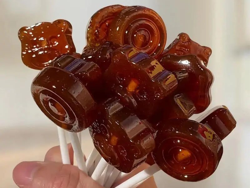 The lollipop production line mixes and boils sugar, syrup, water, edible gum, and other ingredients into a solution. The solution is then poured into specified candy molds through a quantitative pouring system or processed by kneading and stretching, followed by stamping and forming with molds.